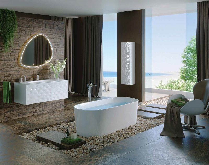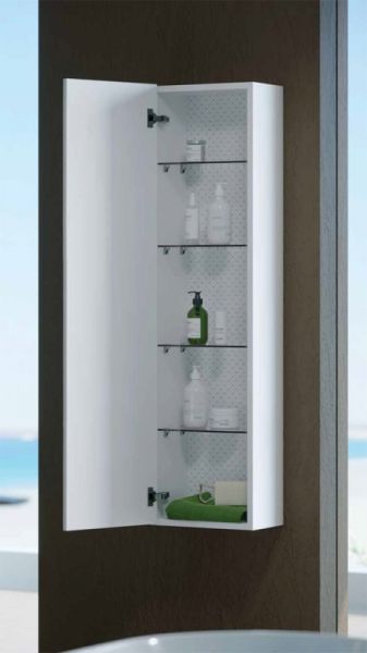 Подвесной шкаф пенал Clarberg Dune 35 DUN0535 с одной распашной дверцей и четырьмя стеклянными полками. Природные мотивы: узор песчаных дюн балтийского побережья. Для использования в ванных комнатах с повышенной влажностью.Технические данные:Цвет: белый.