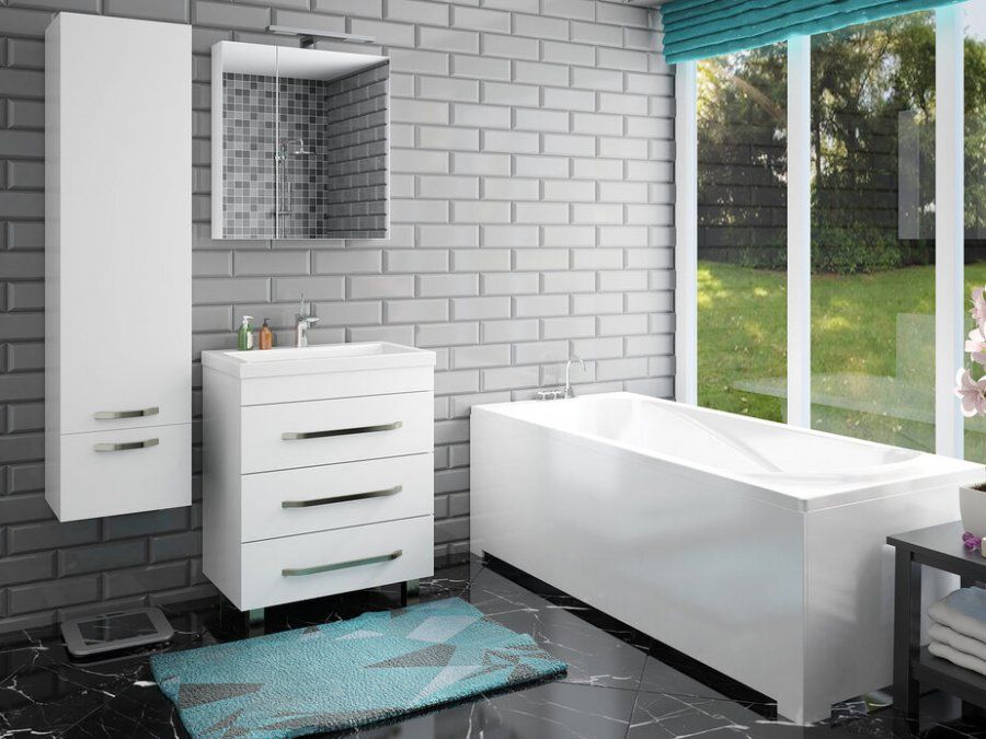 Мебель выполнена из влагостойкого ЛДСП и качественного MDF с использованием эмали RENNER (Италия). Дверца и ящик снабжены системой плавного закрывания. Для мебели используется фурнитура Samet (Турция).
