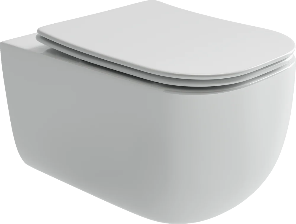 Подвесной унитаз Noel Rimless, глубокий смыв, с крепежом для полностью скрытого монтажа, ультра тонким с сидением и крышкой с функцией плавного закрытия, дюропласт