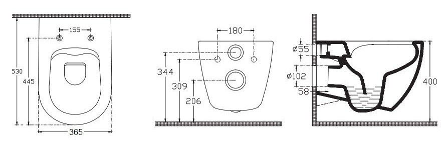 - Укороченный унитаз:нет