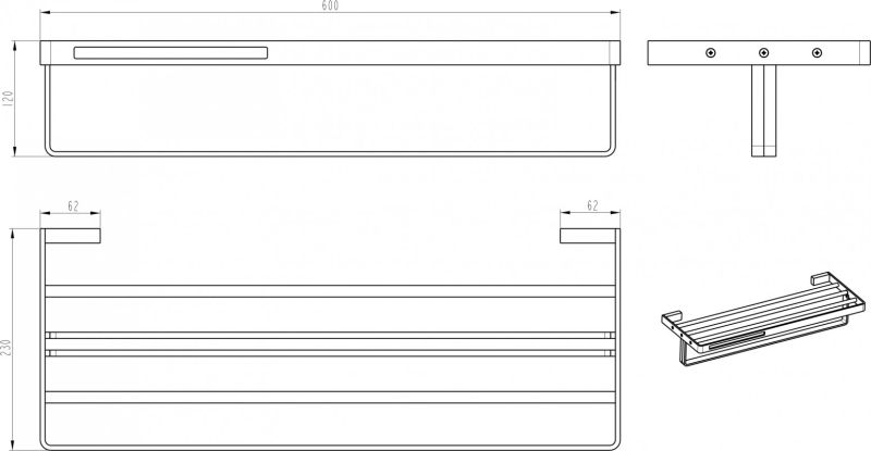 Полка Boheme Q 10947-CR для полотенец несравненно подойдет как для просторного помещения, так и для небольшой ванной комнаты. Серия Q отличается превосходным дизайном с соблюдением всех важных элементов современного стиля.Производитель Boheme в своей продукции использует идеальное, сочетание материалов (латунь) высокого качества, с абсолютным отсутствием вредных для здоровья веществ. Хром, основной цвет исполнения Boheme Q, гармонирующий с большинством интерьерных решений. Ключевые габариты изделия: ширина 60 см, глубина 23 см, высота 12 см. Прямоугольная форма 10947-CR прослеживается во всех линиях и придает аксессуару неповторимый стиль. Полка размещается в максимально удобном положении на стене благодаря подвесному способу установки.Страной бренда Boheme является Италия, все товары производятся с выполнением соответствующих стандартов качества, что позволяет быть полностью уверенными в долговечности и надежности. Полка Boheme Q 10947-CR для полотенец это абсолютный комфорт в современной ванной комнате.