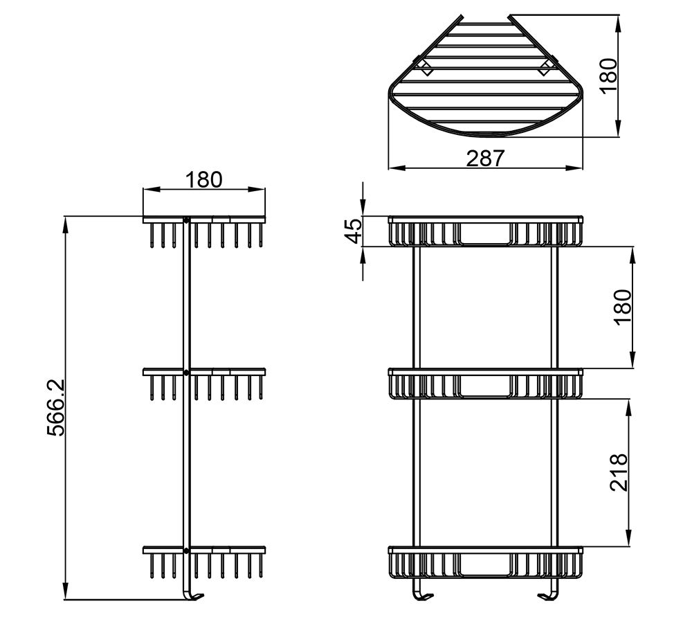 Полка угловая Azario ALTRE AZ-814-3 трехэтажная, матовый хром купить