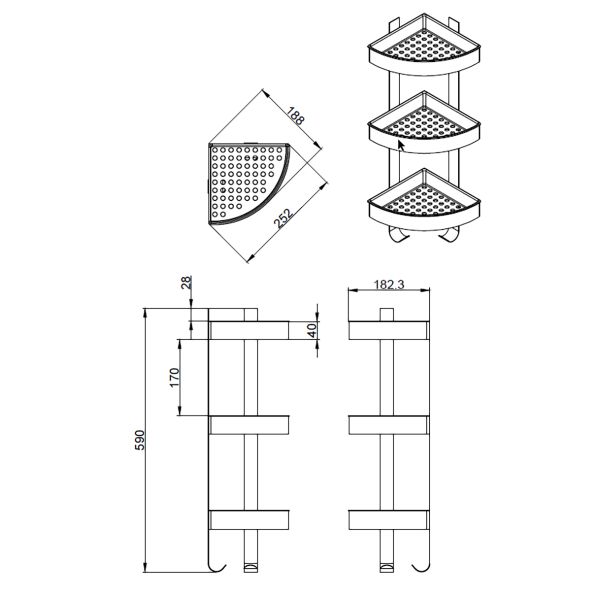 Полка угловая Azario RINA AZ-833-3 трехэтажная, хром матовый купить