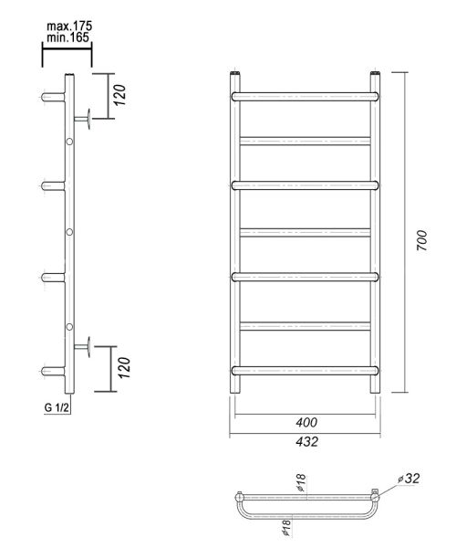 М/о расстояние (межосевое расстояние): 400Количество перекладин: 7Коллекция: ОрфейТип: водяныеЦвет: хромШирина (мм): 432Высота (мм): 700Глубина (мм): 175-165Вес: 4,8Объем: 0,0378Тэн/подключение: нижнееСтрана: РоссияГарантия: 10 лет