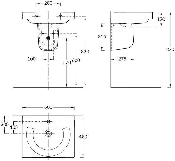 Подвесной полупьедестал PRO позволяет скрыть сифон и технические отверстия при установке раковины BUONGIORNO шириной 55 до 60 см без мебели и раковины PRO шириной 50 см. Такое решение подойдёт для гостевых санузлов, а также для проектного использования.