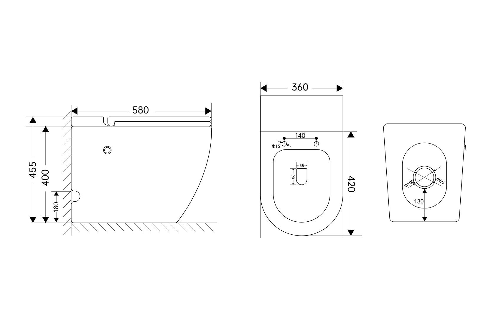 - Укороченный унитаз:нет
