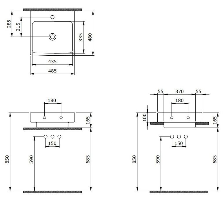 Подвесная раковина из санфарфора Berges Strati размером 48,5х48х16,5 см.Прямоугольной формы, с отверстием под смеситель, глянцевая белая.Встроенный слив-перелив оформлен декоративной накладкой в цвете хром.Крепеж в комплекте.Подходит для использования на столешнице.Гарантия 10лет*Донный клапан необходимо приобрести отдельно