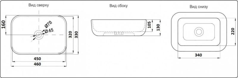 Раковина CeramaLux D1333H131 бело-серая 46 смПодходит для ванных комнат различной планировки в современном стиле и отличается стильной и изящной формой.Материал: санфаянс.В комплекте поставки: раковина.