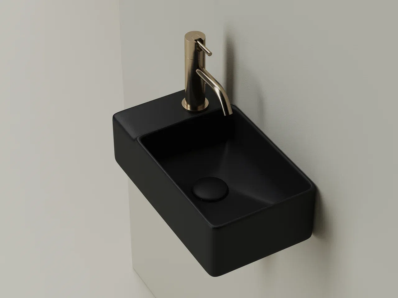 Умывальник подвесной прямоугольный (чаша справа, отверстие под смеситель слева) цвет черный матовый Element 395*220*125мм