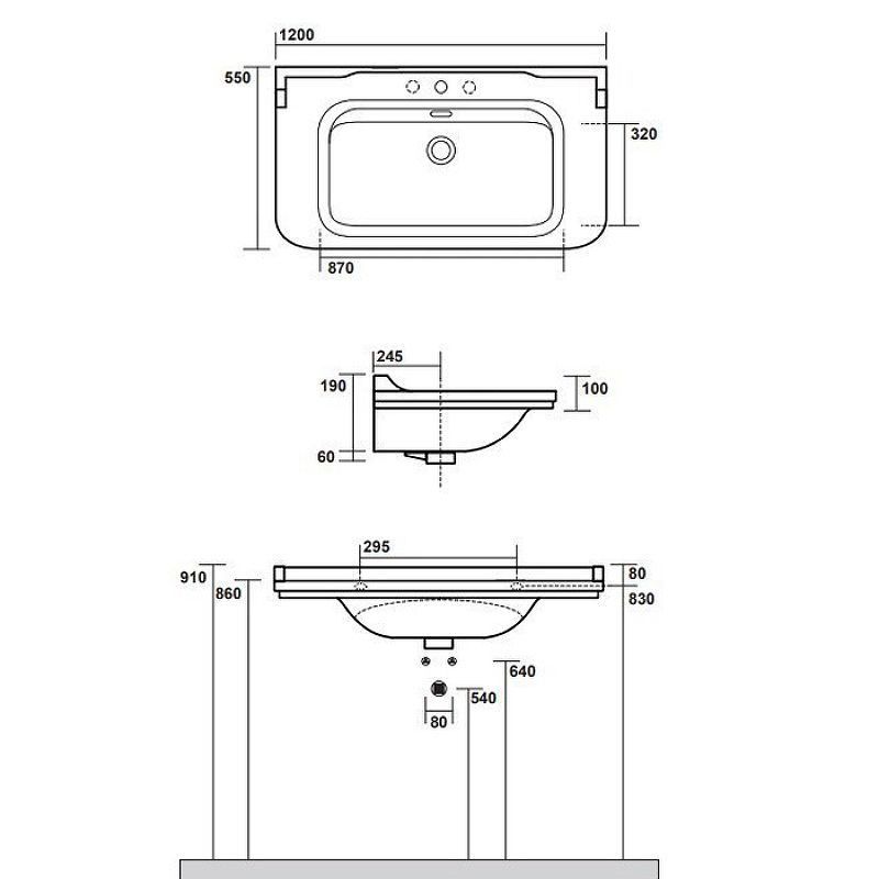 Размеры (ШхВхГ): 1200х250х550 мм.
