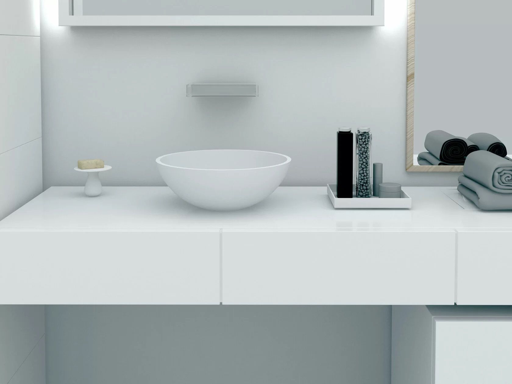 Раковина из искусственного камня для ванной комнаты, представитель линейки бестселлеров Montebianco Nemi / Nemi Due / Nemi Tre. Круглой формы, компактного размера, что позволяет комфортно разместить данную модель как в небольшом помещении, так и сразу несколько раковин в местах общего пользования в бизнес-центрах, гостиницах, ресторанах, аэропортах. Чаша максимальной глубины среди моделей Nemi. Вода не выплескивается и не разбрызгивается. Раковина Montebianco Nemi устанавливается как на поверхность столешницы или мебели накладным способом, так и бесшовно вклеивается в столешницу любого цвета, создавая цельную поверхность. Уход за раковиной из искусственного камня прост: в большинстве случаев достаточно протереть поверхность влажной губкой с чистящим средством. Материал не впитывает влагу, не порист, непроницаем для плесени, бактерий и грибков. Nemi имеет матовую, бархатистую поверхность. Полимерный материал принимает температуру окружающей среды, поэтому в жилом пространстве данная модель раковины всегда будет приятной на ощупь. Отличие Nemi от Nemi Due и Nemi Tre – в размерах: Nemi имеет средний диаметр в линейке и максимальную глубину.