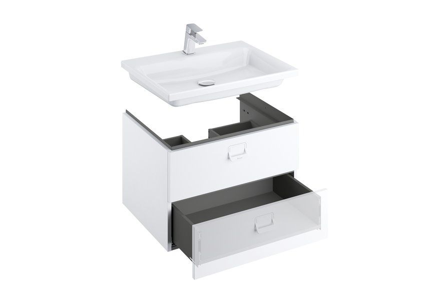 Умывальник Comfort 800 не оснащен переливом, поэтому необходимо использовать сифон с фиксированным сливом RAVAK. Умывальник Comfort 800 устанавливается только на тумбу для умывальника SD Comfort 800.