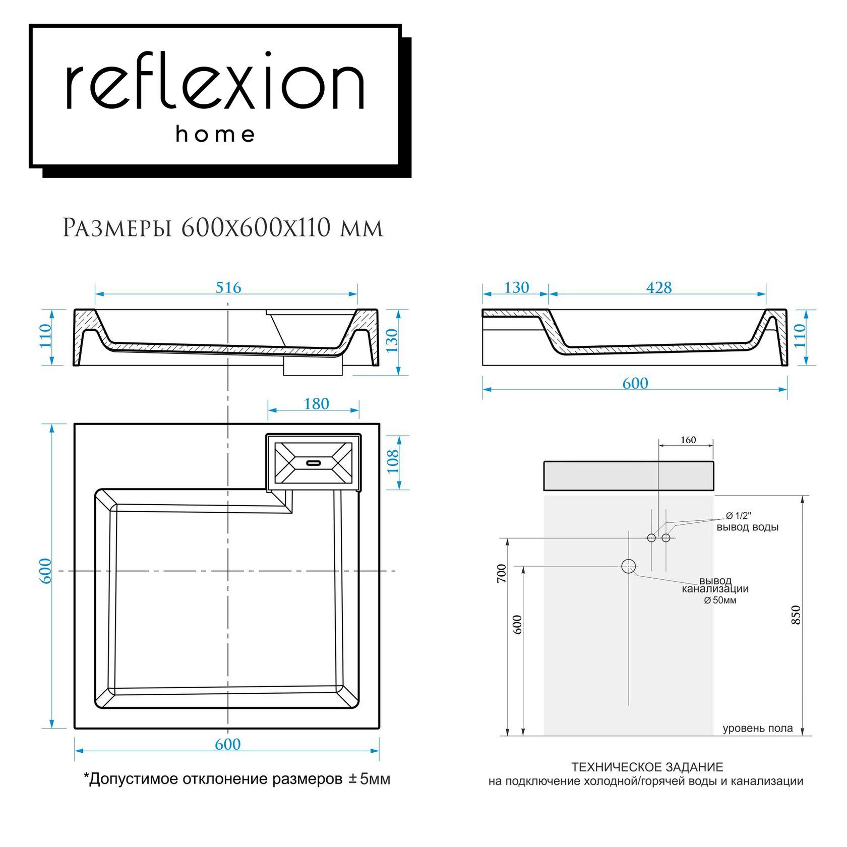 ДxШxВ: 600x600x130 мм
