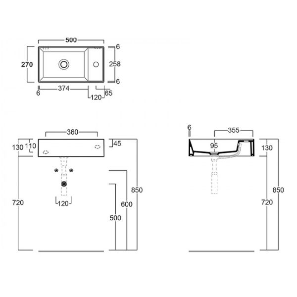 - Отверстия под смеситель:1