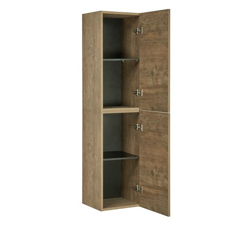 - Внутри шкафчика, выполненного из влагостойкой ламинированной плиты в цвете дуб кантри, находится вместительное отделение, разделенное регулируемой по высоте полкой
