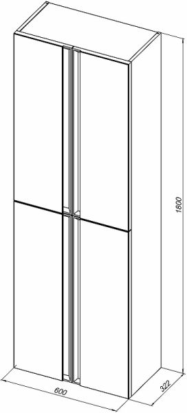 Габариты (ШхВхГ): 600х1800х322 мм.