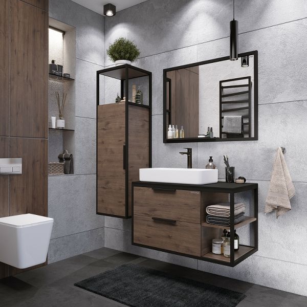 Компактные габариты позволяют грамотно организовать небольшой санузел, а пространство за распашной дверцей с механизмом плавного закрывания поможет разместить все необходимые вещи.