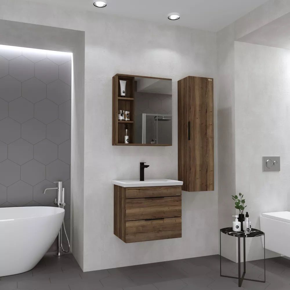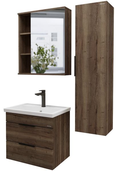 Шкаф-зеркало Форта 70 см - роскошная текстура и темный цвет дуба придают зеркалу сочетание современного дизайна.