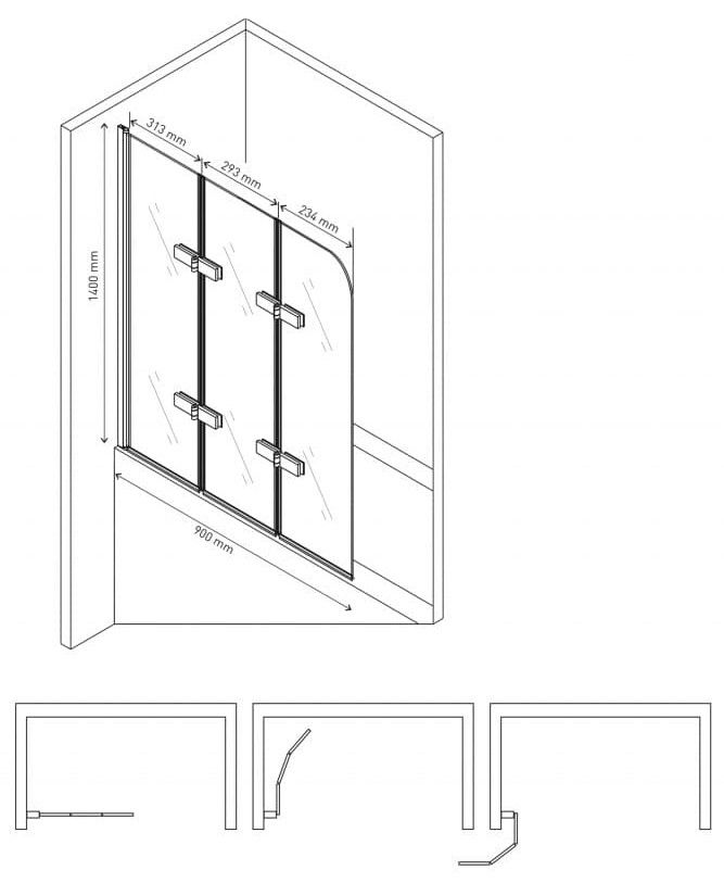 Шторка на ванну Berges City 2.0 90см хром 062013 купить