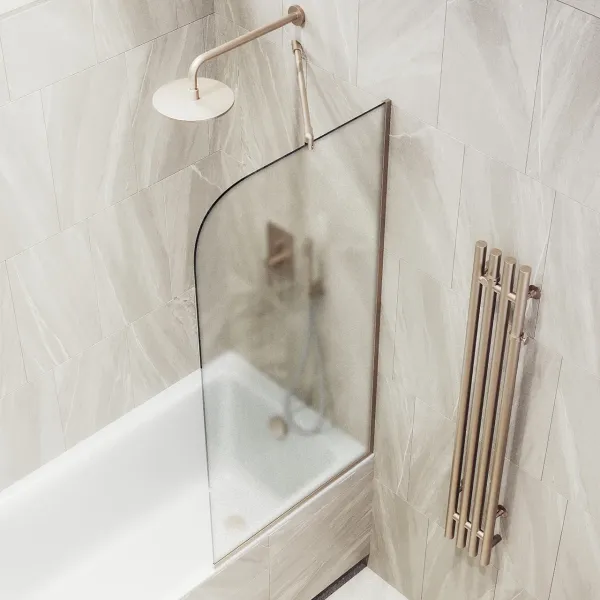 Монтаж осуществляется с помощью алюминиевого профиля, что обеспечивает надежность крепления и безопасность использования стеклянной перегородки для ванной. Также, шторка оснащена специальным уплотнителем, который предотвращает попадание воды на пол ванной комнаты. Закаленное стекло, цвет Сатин, толщина 6 мм 1400х740 мм - 1 шт.