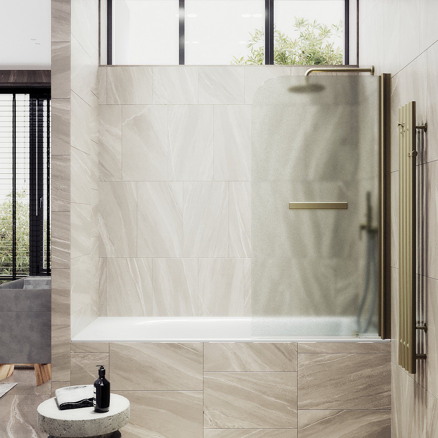 Стеклянные шторки для ванны на монопетле – это стильное и функциональное дополнение для Вашей ванной комнаты. Они изготовлены из закаленного стекла, что делает их прочными и долговечными. Монопетля обеспечивает удобное открывание и закрывание шторки, а также надежную фиксацию ее на ванне. Такие шторки легко моются и не боятся воздействия воды, что делает их идеальным выбором для ванной комнаты. Полотенцесушитель, интегрированный в стеклянную шторку, позволяет быстро высушить полотенца и другие текстильные изделия. Закаленное стекло, цвет сатин, толщина 6 мм 1400х640 мм - 1 шт.