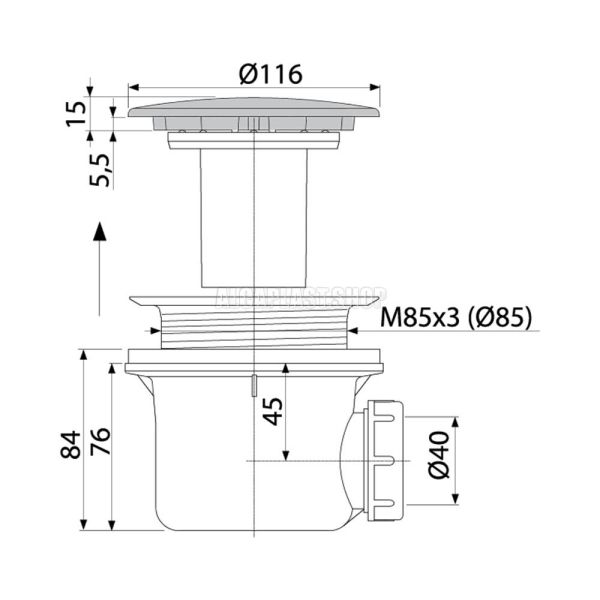 - Для душевых поддонов со сливным отверстием Ø90 мм