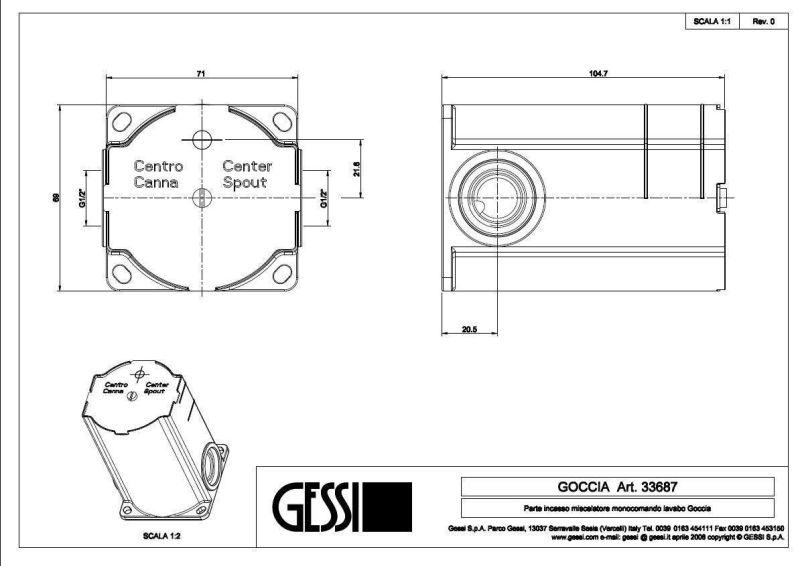 Установка скрытой части обеспечивает минималистичный дизайн и освобождает пространство в ванной комнате. Внутренние компоненты смесителя разработаны с заботой о комфорте и удобстве в эксплуатации. Скрытая часть Gessi Goccia сочетает в себе как эстетические, так и функциональные качества, обеспечивая идеальный поток воды и точную регулировку температуры.