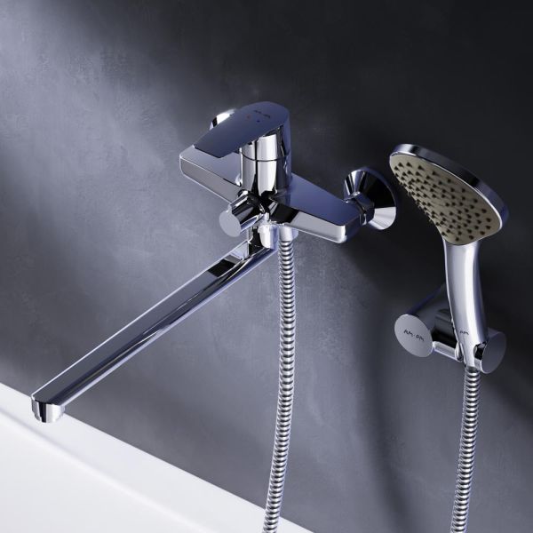 Эксклюзивная разработка: специально спроектированный для АМ.РМ керамический картридж SoftMotion 35 мм обеспечивает оптимальную регулировку температуры, а также позволяет выдерживать любые перепады давления. Точная инженерия для Вашего комфорта: благодаря обширной зоне движения ручки управлять температурой воды еще проще.В комплекте душевой набор: стильный ручной душ 120 мм 1 режим, настенный держатель с регулировкой угла наклона, душевой шланг с защитой от скручивания.