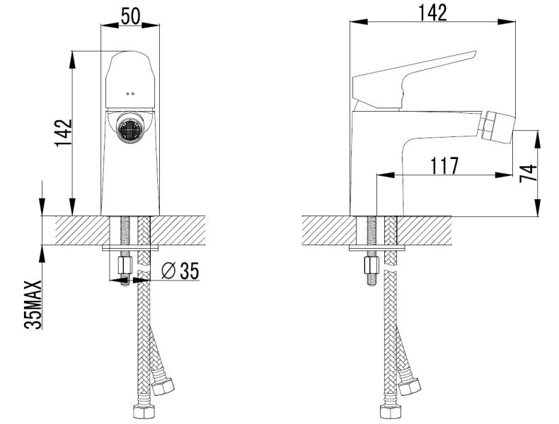 • Высота смесителя: