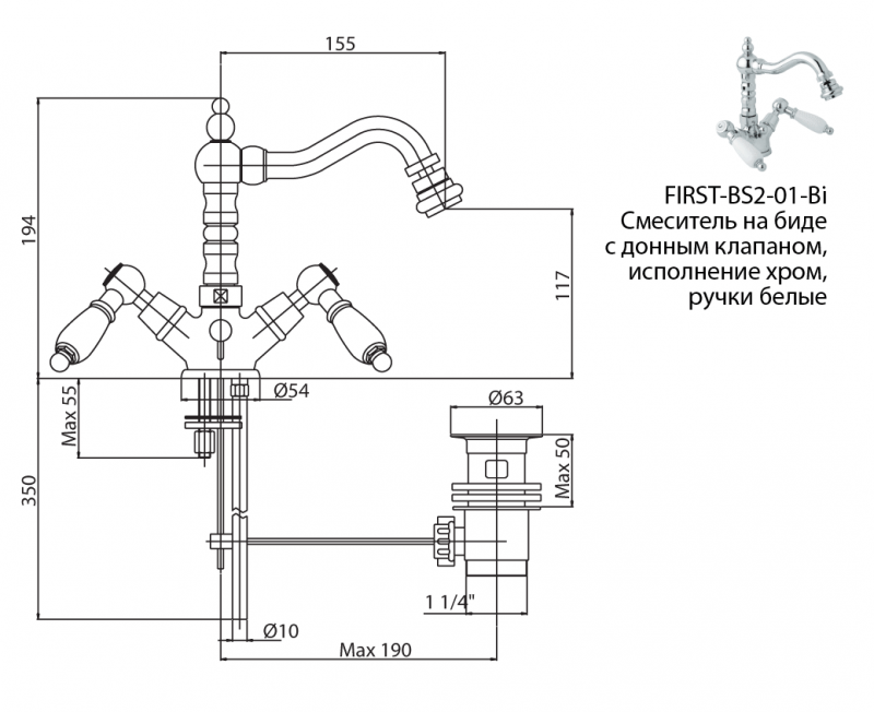 - Высота смесителя:19.4