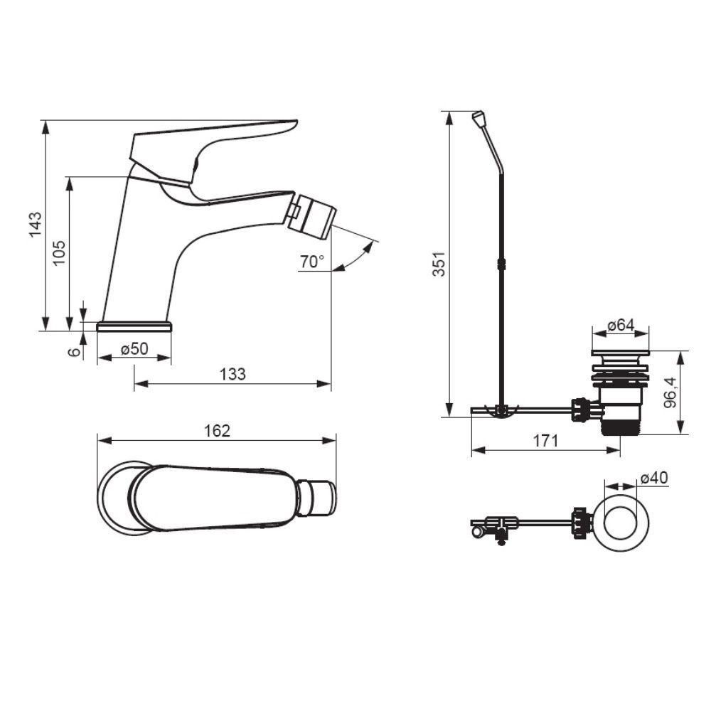 Смеситель для биде Damixa Jupiter 770240300 с донным клапаном черный купить