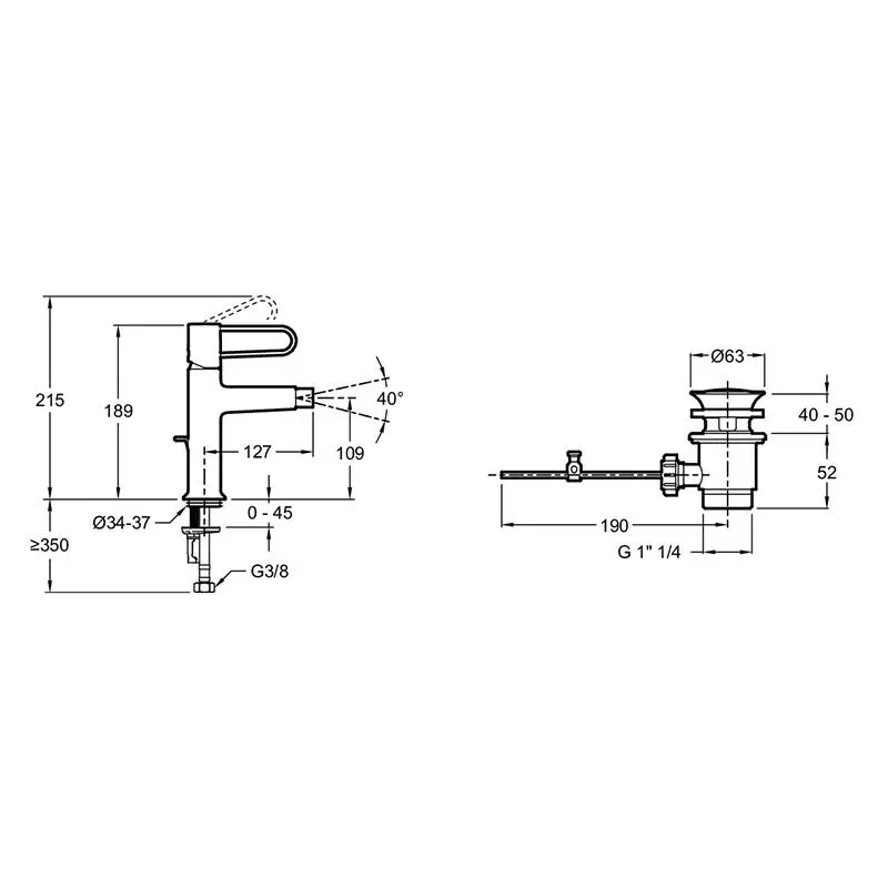 Смеситель для биде Jacob Delafon Odeon Rive Gauche E21033-BL-00 чёрный ручка белая купить