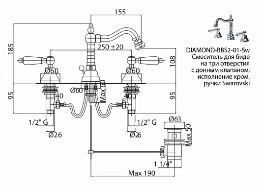 Смеситель для биде на три отверстия, бронза Cezares DIAMOND-BBS2-02-Sw купить
