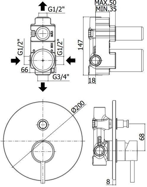 Смеситель встраиваемый для душа на 2 выход с накладкой из металла диам.200мм, девиатор-кнопка,Черный матовыйСмеситель для душа Paffoni Light LIG015NO (с внутренней частью) предназначен для душа. Своим модернистским дизайном и колористикой он внесет в интерьер помещения особое настроение, подчеркнув его своеобразие. Он произведен из надежного материала латунь, который не ржавеет, а потому прослужит верой и правдой. Модель является прекрасным примером достойного качества. Управление в смесителе предусмотрено однорычажное, что удобно для любителей такого типа смесителей. Высокую жизнеспособность и долговечность смесителю гарантирует керамический картридж, безусловным плюсом которого является беспроигрышная конструкция - залог отменной работы в течение долгого времени. Не зря гарантия на смеситель – 5 лет, в течение которого производитель Paffoni заверяет в его бесперебойной работе. Форма излива в смесителе - нет, а тип - нет. При покупке учтите, что подводка у смесителя жесткая, что важно для его монтажа.