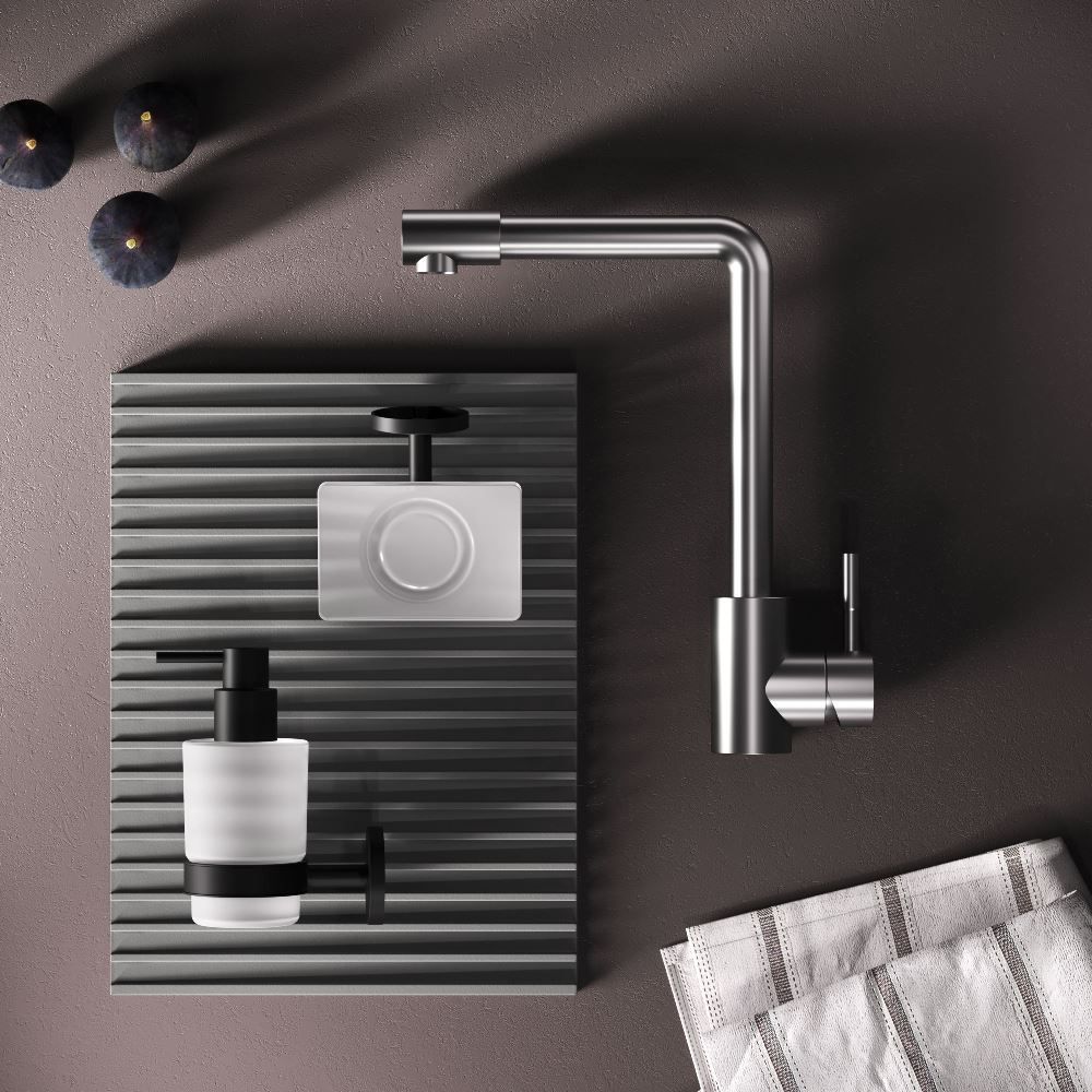 L-образная архитектура смесителя идеально подойдет для использования с мойкой любого размера и значительно упростит такие задачи, как наполнение больших емкостей. Сатиновый цвет сделает этот смеситель главным акцентом в любом интерьере.