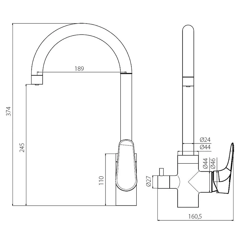 Смеситель для кухни Damixa Merkur 400730000 высокий хром купить