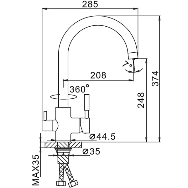 - Высота смесителя:37.4