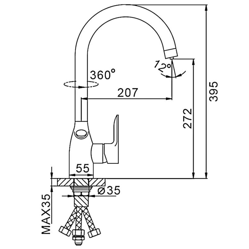- Высота смесителя:39.5