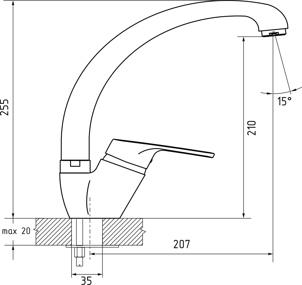 Высота смесителя:25.5