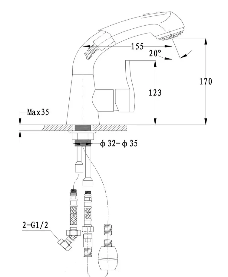 Излив: поворотный, выдвижной