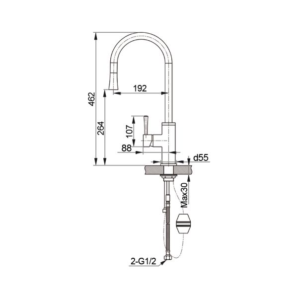 Комплектация: Гибкая подводка 60 см Ø 1/2"", тех.паспорт, гарантийный талон"