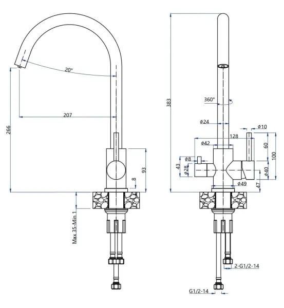 - Высота смесителя:26.6