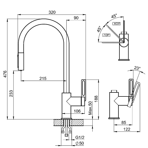 Смеситель для кухни Granula 8168, ТУРМАЛИН Турмалин
