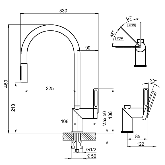 Смеситель для кухни Granula 8172, АЛЮМИНИУМ Алюминиум