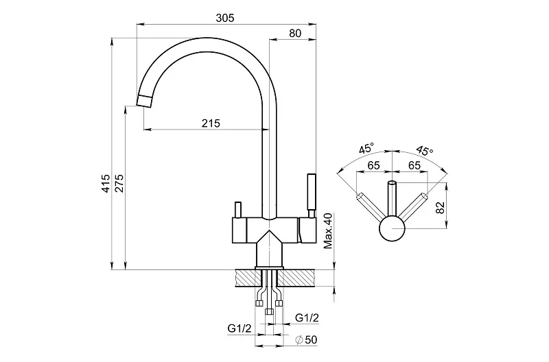 - Высота смесителя:41.5