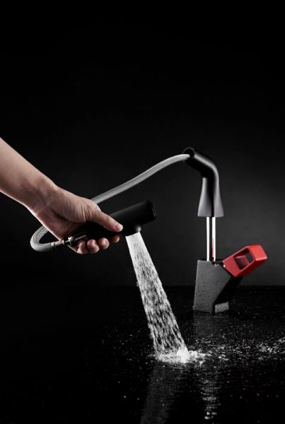 Смеситель для кухни Lemark Soul LM6008BL с поворотным и выдвижным изливом.Характеристики:Цвет: черный.