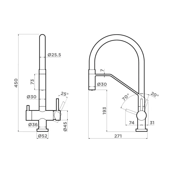 Компактный размер этой модели позволяет легко интегрировать её в любой интерьер, это особенно актуально при стандартной высоте фартука до 60 см. Гибкий шланг обеспечивает дополнительную мобильность и удобство при выполнении разнообразных задач на кухне, например мытья крупногабаритной посуды или наполнения больших ёмкостей. Смеситель Akeno станет незаменимым помощником на вашей кухне, сочетая в себе функциональность, стиль и компактность.