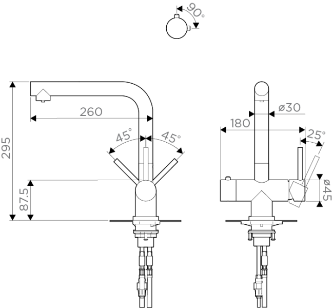 • Смеситель произведен из высококачественной японской нержавеющей стали 18/8, максимально экологичного материала для современного дома; • Высокий излив обеспечивает максимально удобное использование смесителя; • Технология PURE LIFE: Подключение фильтра для очистки воды. Фильтрованная вода подается по отдельной трубке и не смешивается с водопроводной водой; • Аэратор произведен из пластика, благодаря чему на нем никогда не появится известкового налета и ржавчины; • Коробка внутри проложена поролоном, который обеспечит сохранность изделия при транспортировке; • Полный набор креплений, соединительных шлангов, подробная инструкция и гарантийный талон в комплекте.