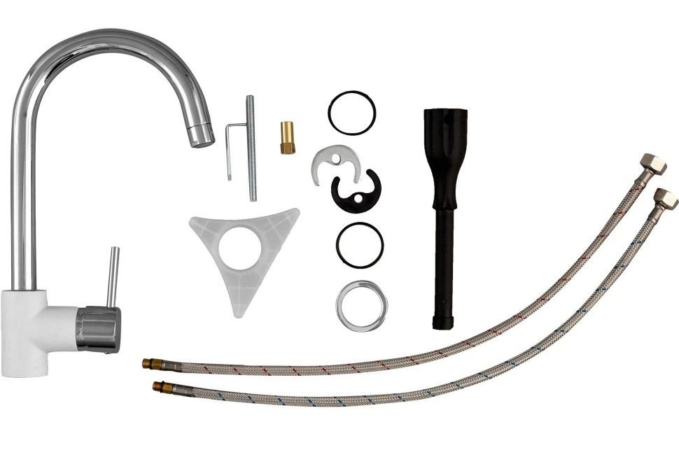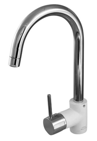 - Высокий корпус и поворотный излив дает больше возможностей при использовании на кухне.