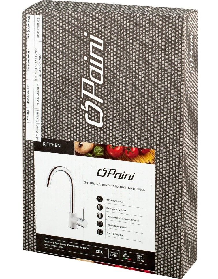 - Итальянский дизайн PAINI и гарантия качества 5 лет.